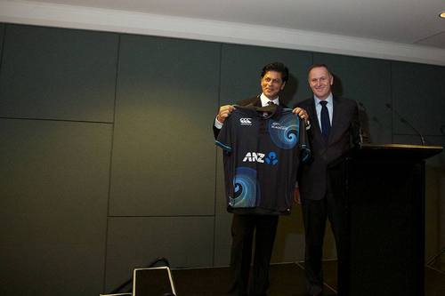 John Key @johnkeypm Это было здорово встретиться с легендой Болливуда @ iamsrk в Окленде за последние сутки -. Я дал ему черную крикетную футболку, шапку #